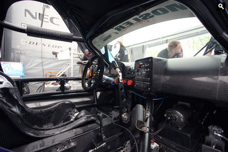 Het belangrijkste besturingspaneel van de Mosler is het multifunctionele stuur waarmee onder andere de traction control, de radio en het MoTec M800 systeem mee bediend worden.